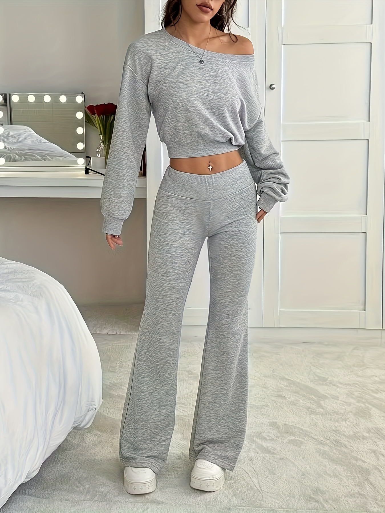 Pullover Long-Sleeve Sweatshirt And Flared Pants, a Easy Top Paired with Stylish Casual Trousers in a Two-Piece Set